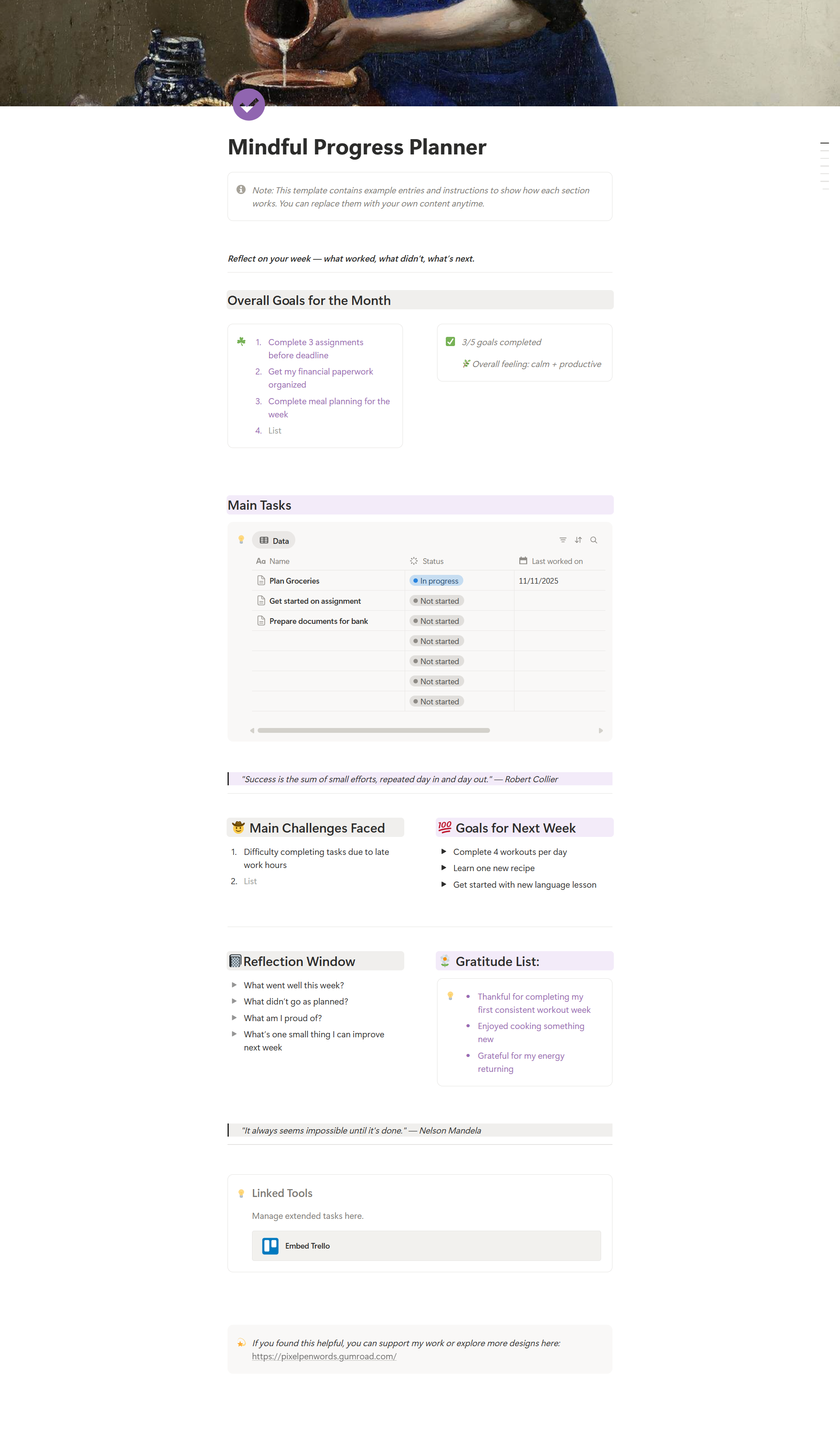 Mindful Progress Planner | Notion Template